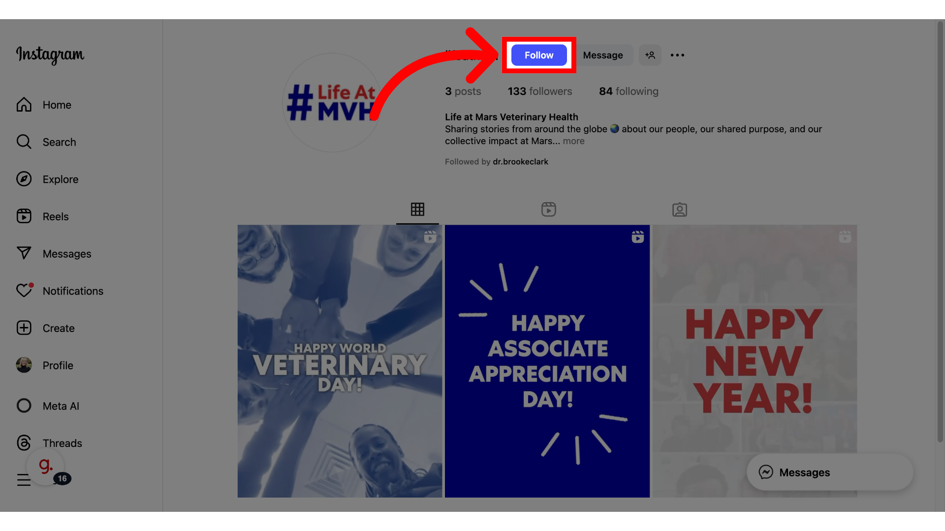You'll then be directed to their instagram profile page. Click the follow button at the top so you never miss an update on their content! And that's it! You've updated your profile, great job!